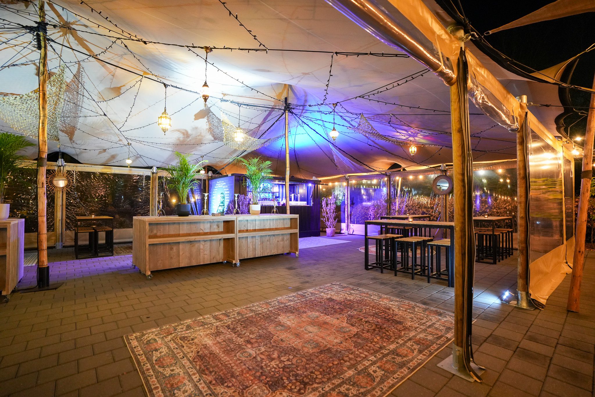 Experience our 150 m² stretch tent, a warm and flexible venue for 40 to 120 guests. With closable sides and both electric and gas heating, it creates a warm, winter-ready atmosphere. Equipped with a bar container and 8 high rectangle tables, this 10 × 15 m space can also be seamlessly combined with LYS indoor for larger, more flexible event concepts.